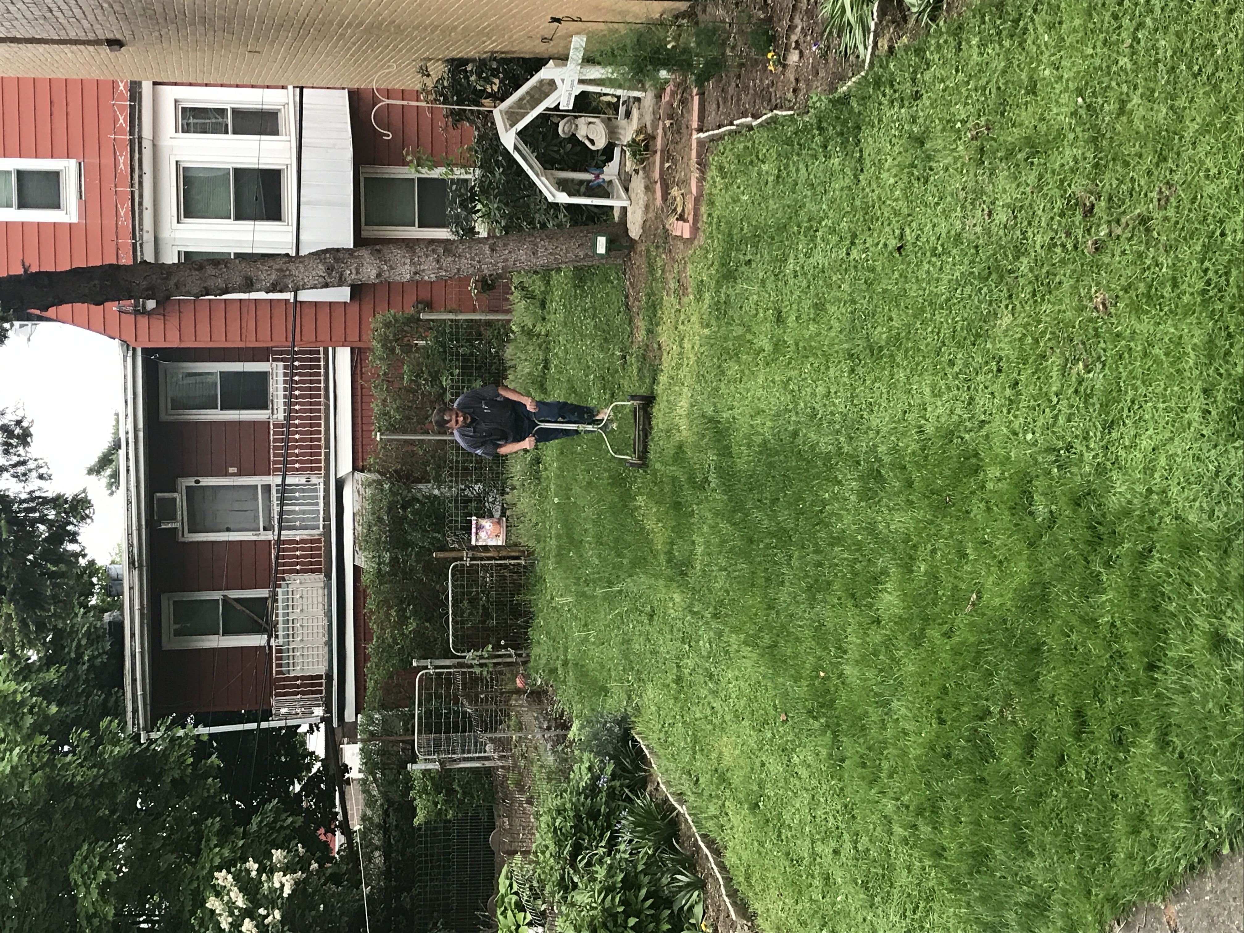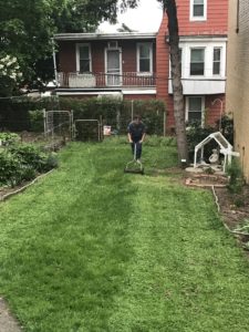 The rest of our backyard, it only takes ten minutes to mow with the reel mower. We’ve planted some carrots, radishes, lettuce and tomatoes. And we also have dreams and plans for this little spot as well. Yes, we have a lot less space than we used to but it feels so much more manageable for me and a lot less stressful, too. We’re learning  how to work with and accept my brain injury and the limitations it has put on me.