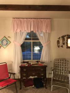 Here’s our front window with our elegant “recliner chairs”. Our recliner chair was falling apart so we plan to get lovely matching ones but it’s not a very high priority yet.